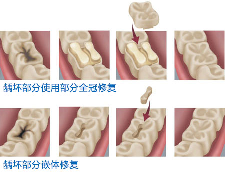 如果龋齿缺损面积有过大,但是还没有损伤到牙神经时,则可以采用嵌体充填。